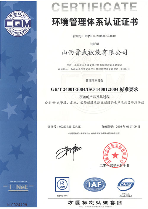 環(huán)境管理體系認(rèn)證證書